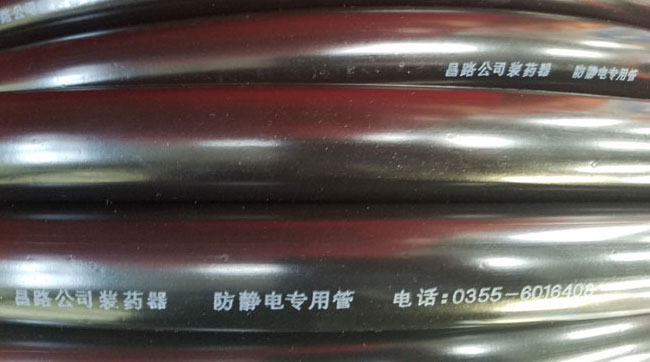裝藥器專用半導體防靜電輸藥膠管,是裝藥器在輸藥過程中唯一專用管材,具有導電、防火花、耐壓、耐酸、防腐、耐磨損等作用,是裝藥器在輸藥過程中確保人身安全,杜絕重大事故隱患的特殊管材。